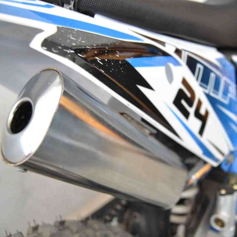 Uno de los mejores chasis reforzados que hemos visto que como extra incorpora un manillar de aluminio de 22mm. Sin duda esta Pit Bike de cadetes es el paso evolutivo siguiente de las miniMotos infantiles inferiores.