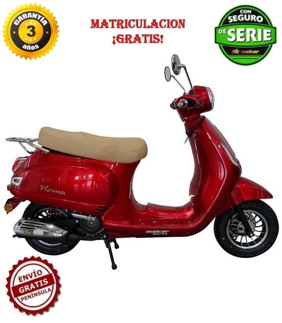 Disponible en rojo, beige o negro mate. Homologación Euro 5 para máxima eficiencia y respeto al medio ambiente.