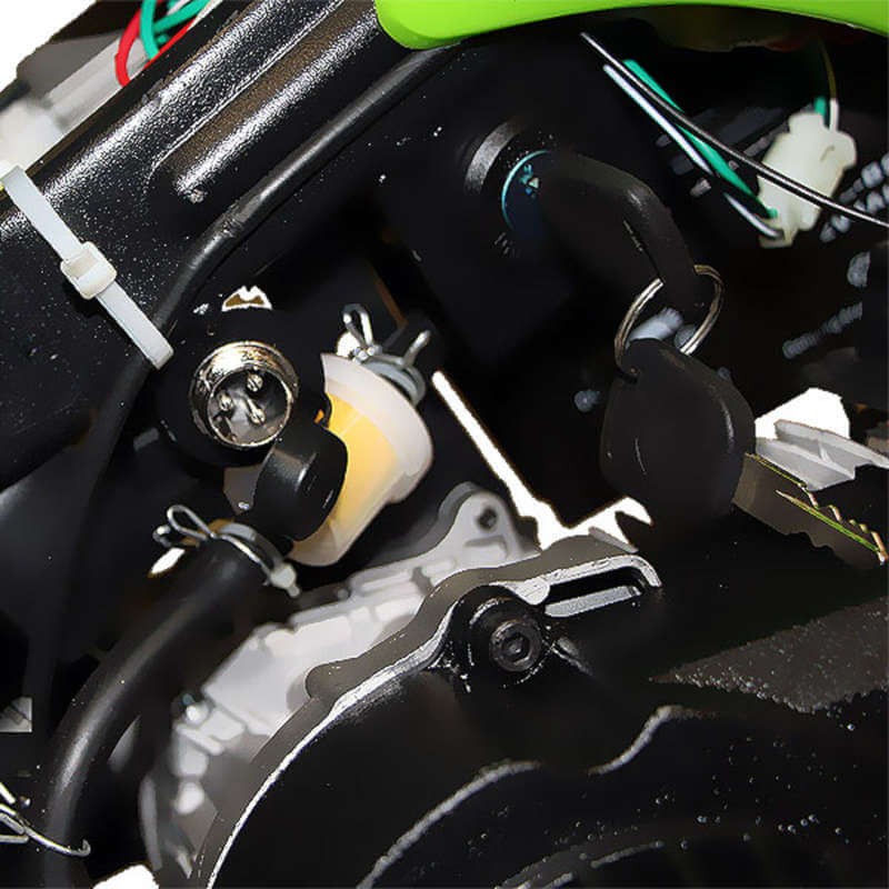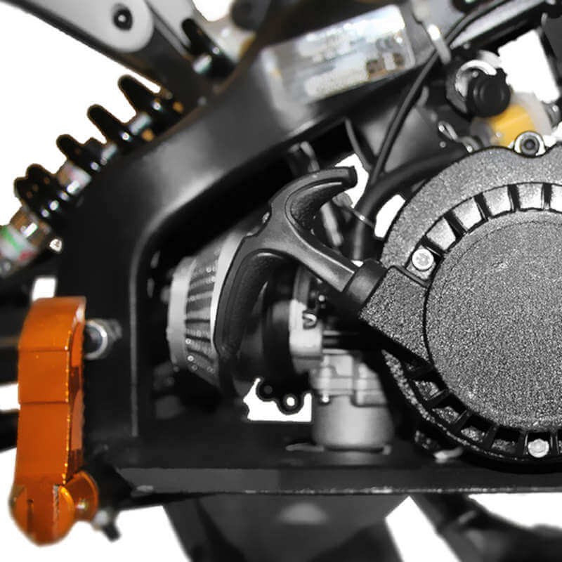 La miniCross Apollo E-Start destaca por tener encendido eléctrico. Estas miniMotos de cross desarrollan una potencia de 2,5 KW, unos 3,5 CV. El sistema de frenado de estas motos infantiles es mediente freno deportivo de disco delantero y también trasero. Montan un excelente amortiguador trasero y una horquilla invertida delantera ideal para dar saltos encima de esta miniMoto de cross infantil de campo. En la moto de cross Apollo E-Start de Nitro Motors® se puede ver como el chasis esta reforzado gracias a sus soldaduras de mayor calidad. Ademas esta miniCross dispone de un tubo de escape tipo cross, junto con otros componentes adicionales que en estas miniMotos de cross se han mejorado, como varios acabados en aluminio como el tubo de escape o el tirador de arranque. Otra mejora se encuentra en las estriberas, mejorado estética y funcionalidad por un tratamiento anti-oxido.